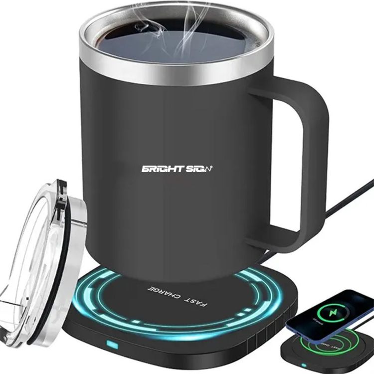 A premium mug and wireless warmer set that keeps beverages pleasantly hot while offering wireless charging for your phone. The stainless steel mug with spill-proof lid nests on the charging pad; the intelligent heater maintains sipping temperature without scalding and auto-shuts off when the mug is removed. Durable, easy-clean surfaces and whisper-quiet operation make it perfect for home offices, content creators, and coffee enthusiasts who want a hot drink and a charged device within arm's reach.