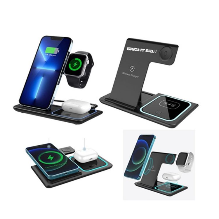 A travel-friendly foldable charger that supports fast wireless charging for a phone plus simultaneous charging for earbuds and a watch. The foldable platform doubles as a protective travel case and unfolds into a stable charging stand for desks or nightstands. Safety circuits protect against voltage and temperature issues. Recommended for commuters, frequent travelers, students and anyone who values compact multi-device charging on the go.