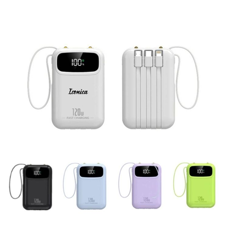 This sleek and compact portable power bank combines modern style with everyday practicality, making it an ideal companion for work, travel, or home use. Crafted with durable materials and premium construction, it delivers long-lasting performance and reliable power whenever you need it. Designed for universal compatibility, it efficiently charges most smartphones, tablets, earbuds, and small electronic devices. The integrated charging cable removes the hassle of carrying extra cords, offering a clutter-free and convenient way to stay powered on the move. Compact, lightweight, and customizable with your logo, this power bank makes a perfect promotional tech gift for professionals, travelers, and anyone who values functionality with a touch of style.