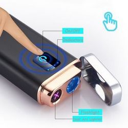 This portable lighter is lightweight and powered by a built-in rechargeable battery. It's an essential emergency tool, featuring a power bank, flashlight, and a dual electric arc lighter that provides fire energy anywhere. A perfect gift for camping, auto dealers, travelers, or any other emergency situation.