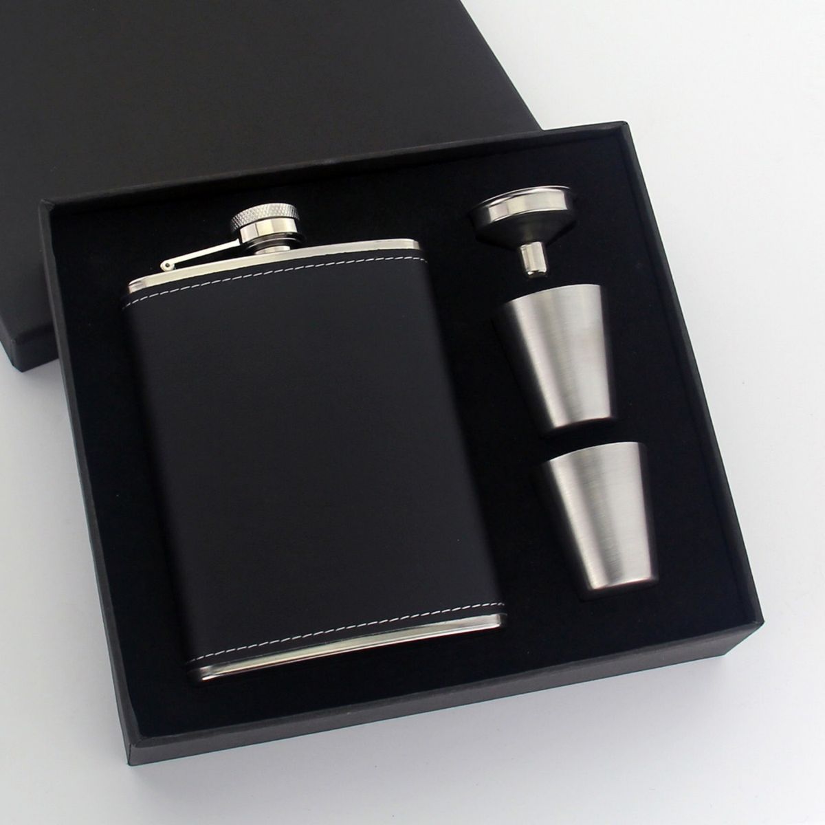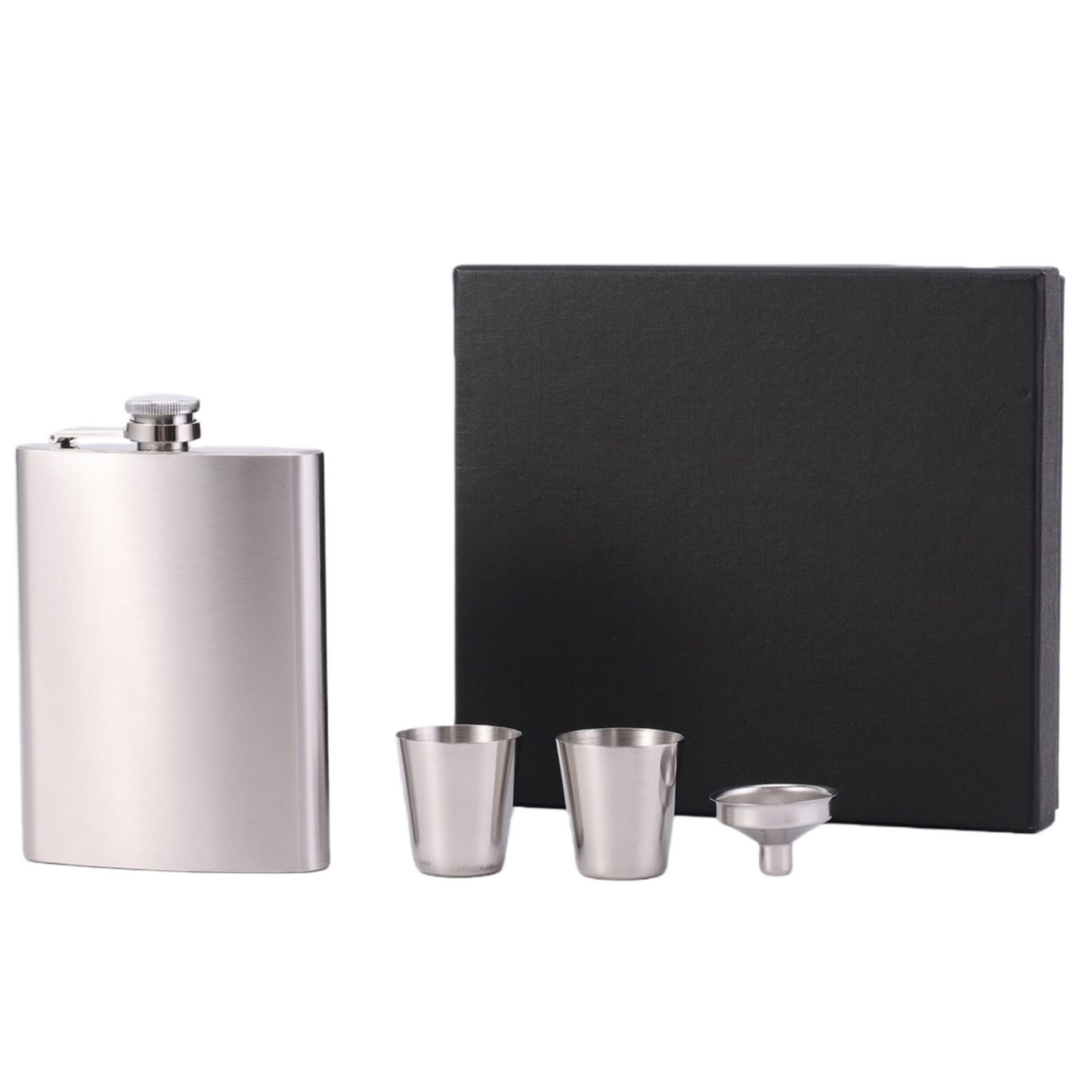 This hip flask gift set comes in a presentation box with 2 shot cups and 1 large diameter funnel to pour liquid. The flask has a capacity of 8 oz, meeting your drinking needs when you go out.The liquor flask is compact so you can put it in your trousers pocket for easy carrying.