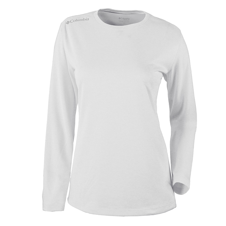 Omni-WICK™. Omni-Shade™ UPF 30 sun protection. Contrast Overlock Cover-stitching. Thumb Holes. 100% Polyester.