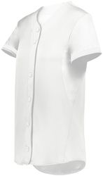 * 96% polyester/4% spandex lightweight knit with Coloright™ technology that helps prevent dye migration* 4-way stretch properties allow for increased mobility * Garment protects against the sun with 50+ UPF * Micro-Interlock smooth 100% polyester knit side inserts * Wicks moisture * Ladies' fit * Tear away label * Full-button jersey * Buttons spaced for easy embellishment * Set-in sleeves * Dropped tail